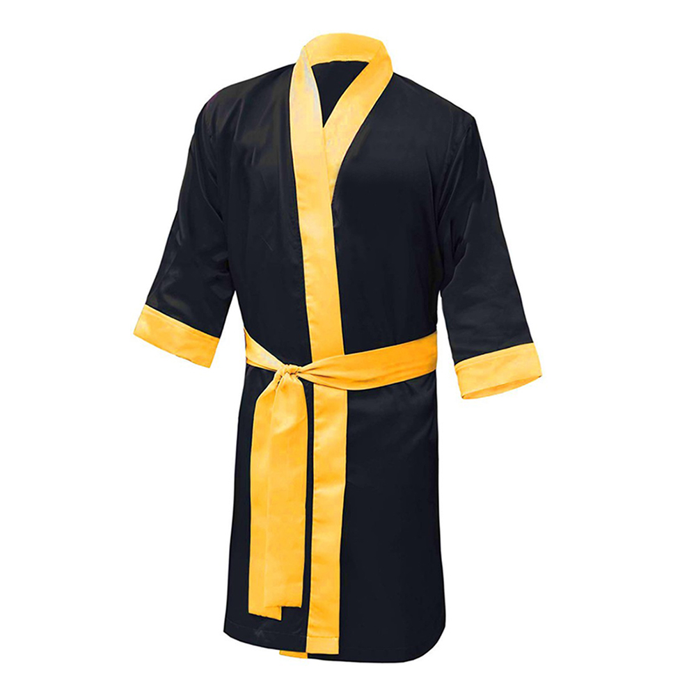 - This lightweight and hooded boxing robe is the perfect choice for competitions includes side pockets and comes with a matching belt.The polyester satin fabric is light and smooth Roomy fit for comfort.